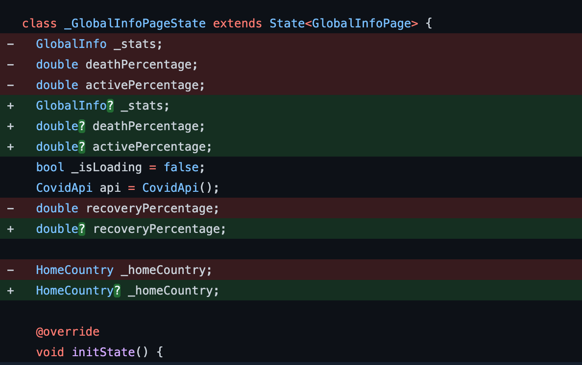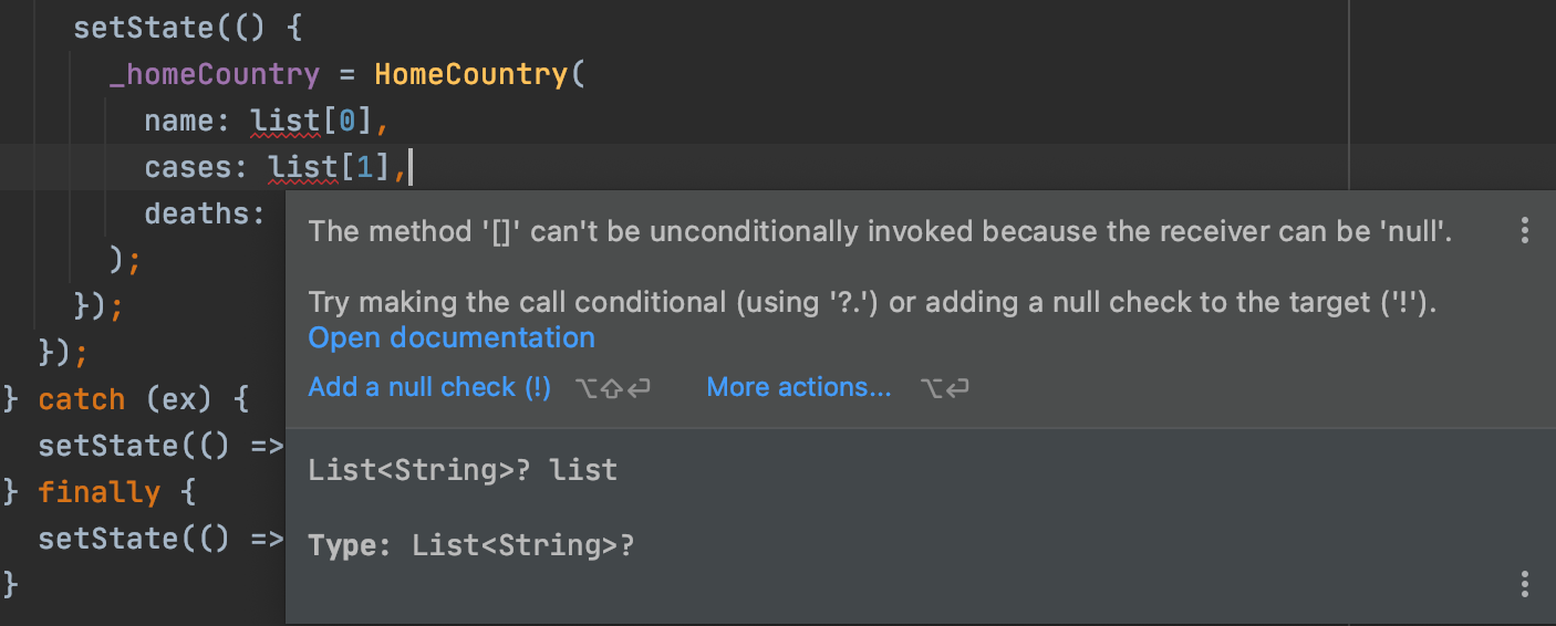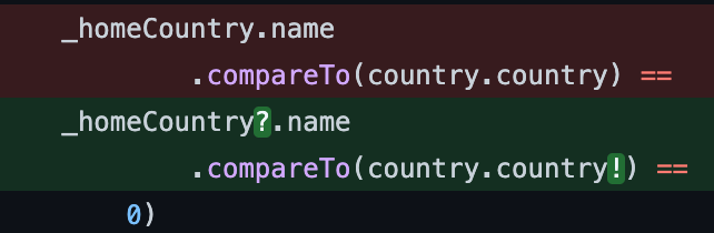 Another thing null safety found was a bug that could cause a crash at runtime. See the following code snippet: