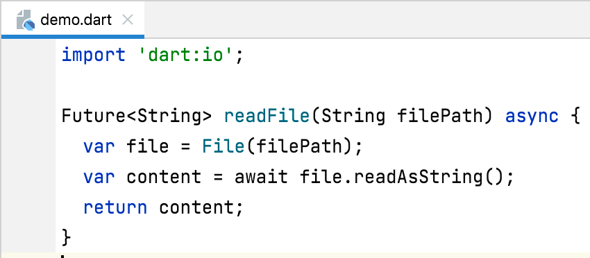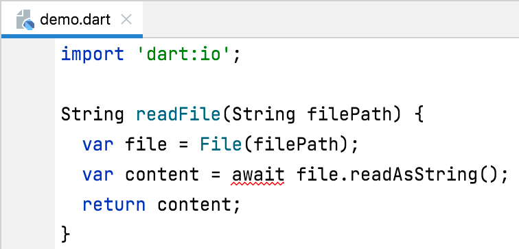 The diagnostic tells you that “the await expression can only be used in an async function.” Assuming that you don’t want to use synchronous I/O, the correction is to mark the body of the function with the async keyword. Doing that causes another error telling you that the return type of the method needs to be Future, so you’ll also end up updating the return type.