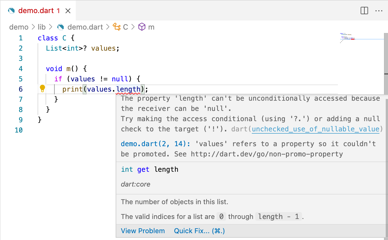 Not every problem can be fixed automatically, and there isn’t a quick fix for every problem that could have one. Nevertheless, it’s definitely worth checking to see whether there’s an available quick fix the next time you have a diagnostic to fix. And if you don’t see a fix for a diagnostic that ought to have one, please let us know by creating a dart-lang/sdk issue.